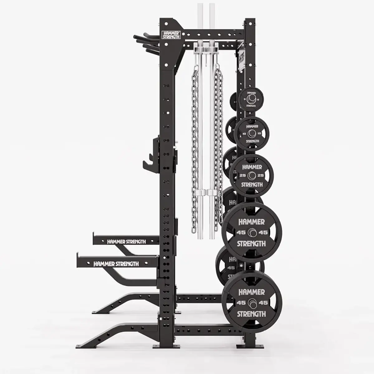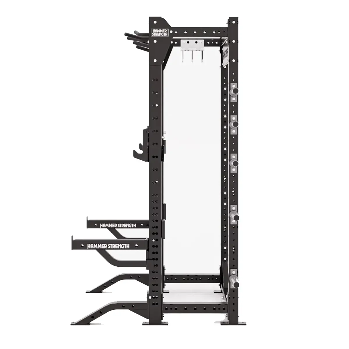 The Hammer Strength HD Elite iD Half Rack is a compact commercial rack designed to deliver serious barbell training capacity, integrated storage uprights, and premium support components in an efficient footprint.