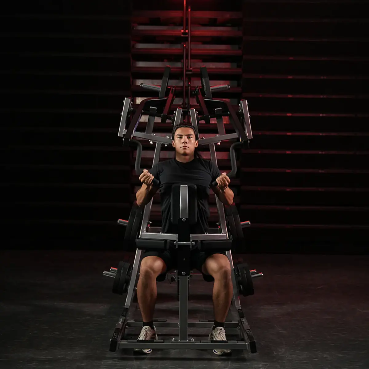 • Plate-loaded resistance: Lets users load the machine according to their training level while keeping the setup simple and direct.