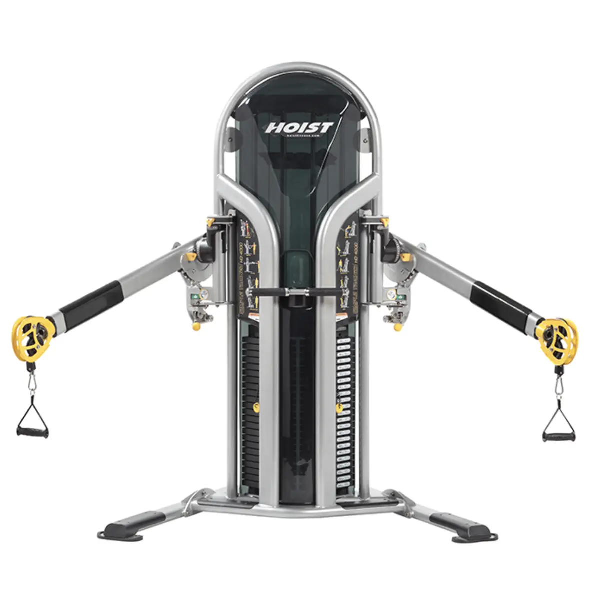 The Hoist HD-4000 Simple Trainer is a functional trainer built for commercial and light commercial fitness spaces that need fast setup, versatile cable training, and consistent movement quality. Its defining feature is a patent-pending dual-axis adjustment system that changes both vertical and horizontal arm position at the same time with a single lever on each side. That design helps users get into position quickly and makes the machine practical for facilities serving multiple people throughout the day.