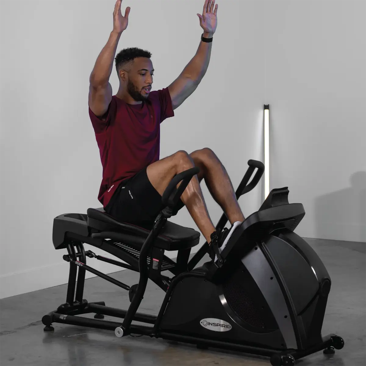 The Inspire CR2 Crossrow Rower Machine delivers a total body cardio machine experience with bi-directional resistance, magnetic resistance, and multi-grip handles for varied home or commercial training.