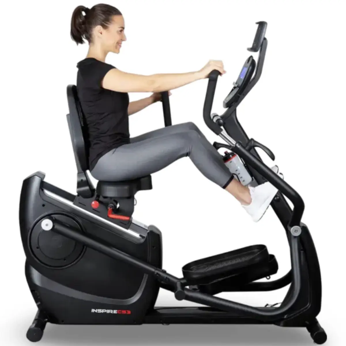 The Inspire Fitness CS3.1 Cardio Strider is a low impact cardio machine that combines seated elliptical motion, 40 resistance levels, and adjustable fit settings for a full body workout with less joint stress.