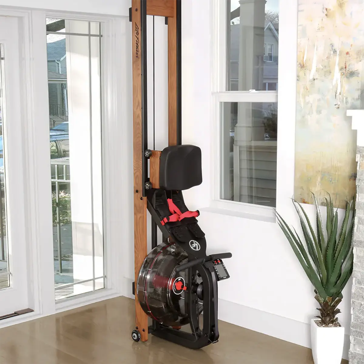 The Life Fitness Row HX Trainer is a home rowing machine designed for low-impact, total-body workouts with a smooth, natural rowing feel. It is built for users who want effective cardio training at home without giving up space or everyday usability. With Fluid Technology resistance, five resistance levels, Bluetooth workout tracking, and upright storage, it fits well in homes where both performance and appearance matter.