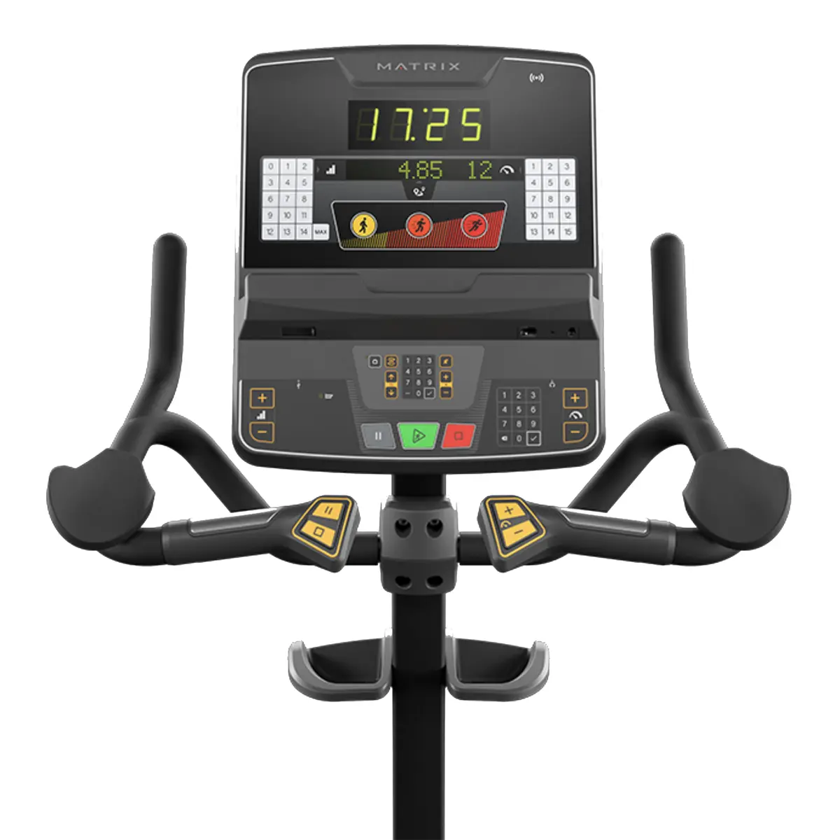The Matrix Endurance GT LED Upright Cycle is a commercial upright bike designed to deliver a more natural riding feel with race-inspired ergonomics, simple LED console operation, and flexible placement options.