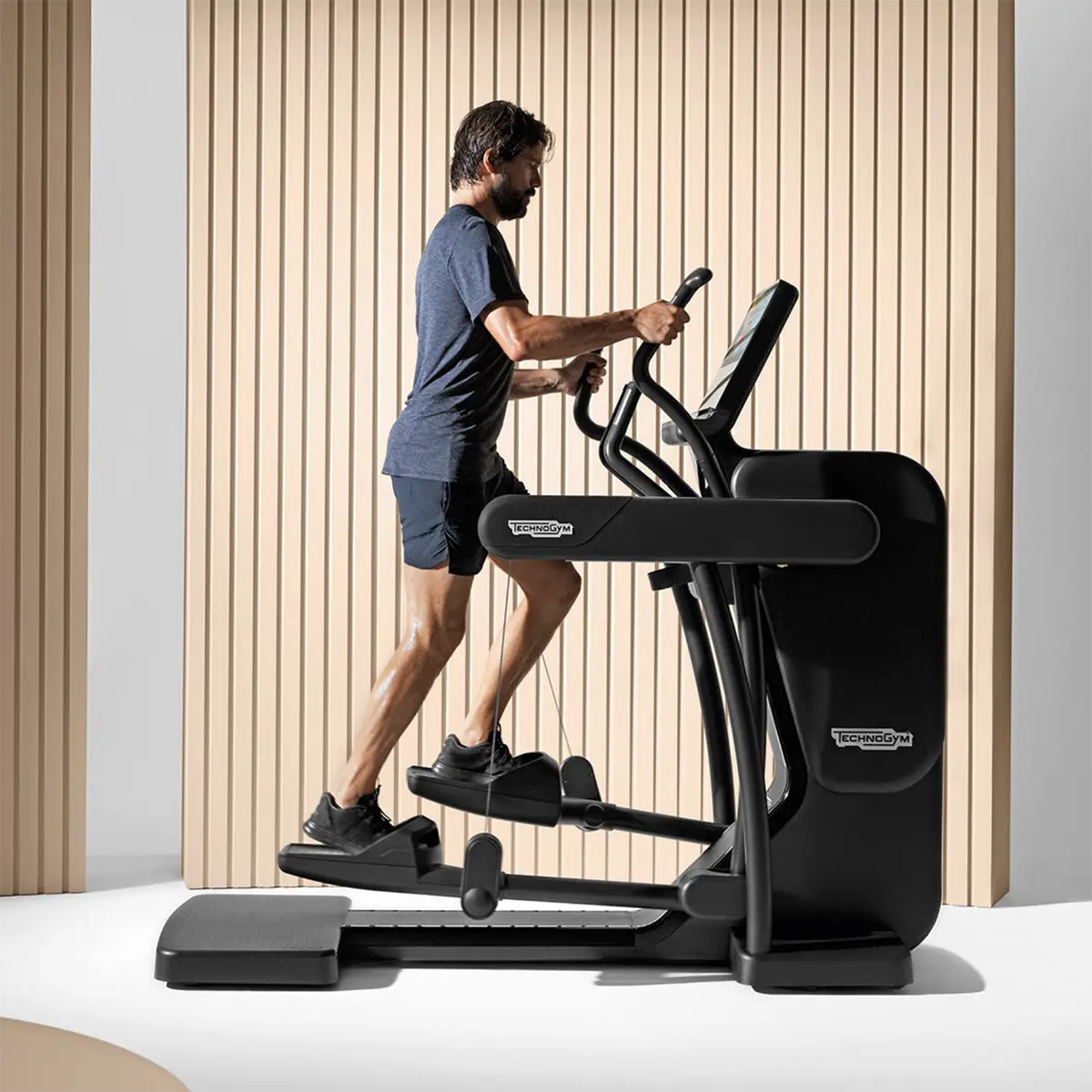 The Technogym Artis Vario Elliptical is a premium low-impact cardio machine designed for smooth, natural-feeling workouts, with adaptive stride length, an integrated high-definition interface, and practical built-in features.