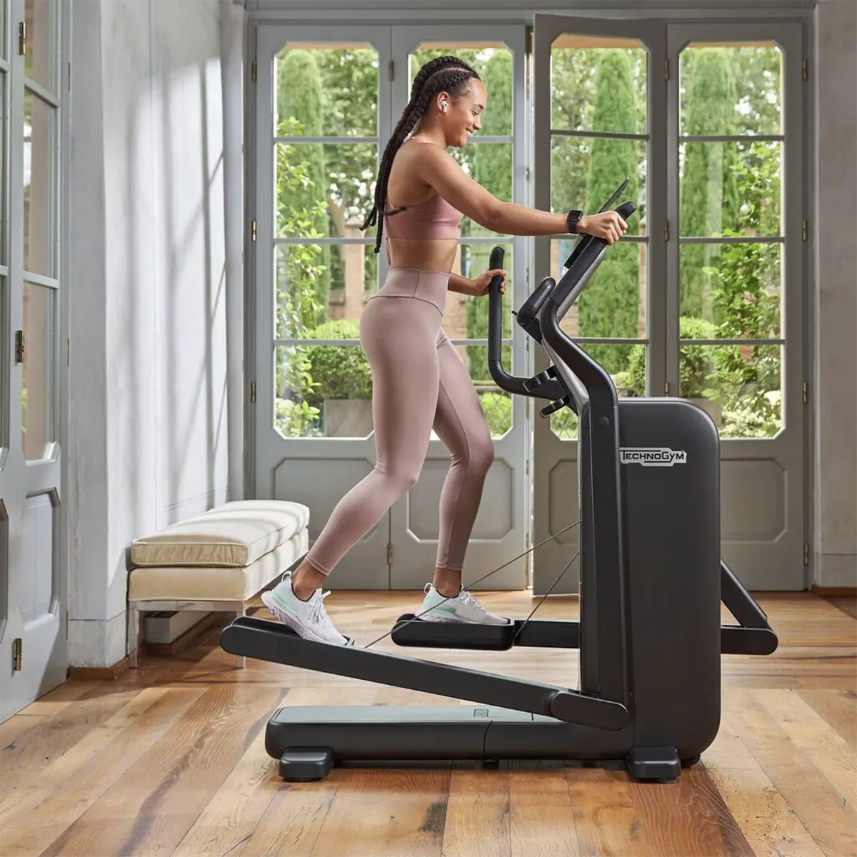 The Technogym Compact Elliptical is a foldable elliptical trainer built for users who want effective low-impact cardio in a space-saving format, with 25 resistance levels, app access, and a compact footprint for home use.