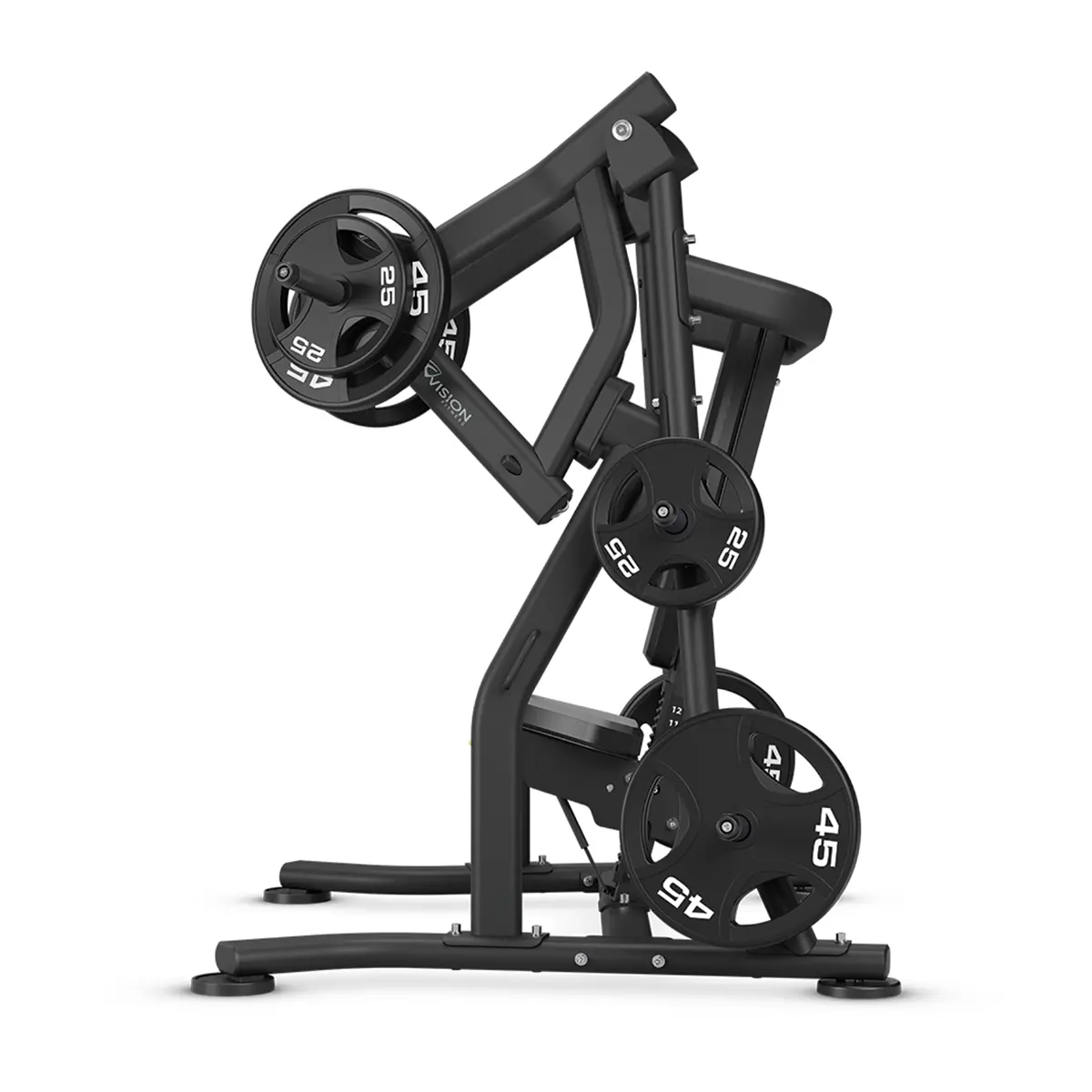 This machine is designed to target the chest and shoulders through a vertical pressing movement. Its independent converging path of motion supports a natural pressing pattern, while the upright setup, angled back pad, and stable lower-body support help users stay better positioned through each repetition.